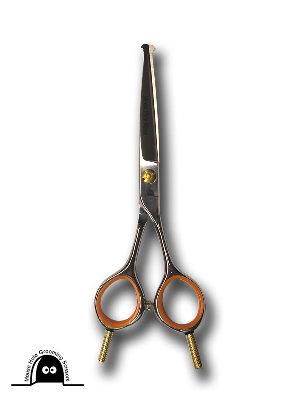 Manx 5″ Straight, right-handed pet grooming scissors. Manx 5″ Straight are our smallest scissors, suitable for small hard-to-reach areas. A multitasker for general grooming, straight lines, and neat finishing work. Suitable for very small dogs and cat grooming. All Mouse Hole Pet Grooming Scissors are top-quality Japanese 440c steel. They sharpen well and hold their edge.