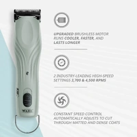 The Wahl KMC+ Pro Animal Clipper is a significant upgrade to one of our most beloved professional pet grooming tools. This advanced pet clipper features a brushless rotary motor, operating at two industry-leading high-speed settings: 3,700 and 4,500 RPMs. The patented ergonomic housing design ensures improved comfort and control. The Wahl KMC+ Pro is the perfect choice for both professional groomers and dedicated pet owners.